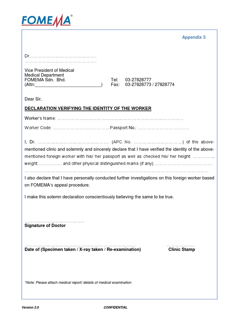 Appendix 6 Pdf Appendix 6 Commitment Letter Date To Employer Address Tel No Medical Department H H P Name Of Foreign Worker Worker Course Hero
